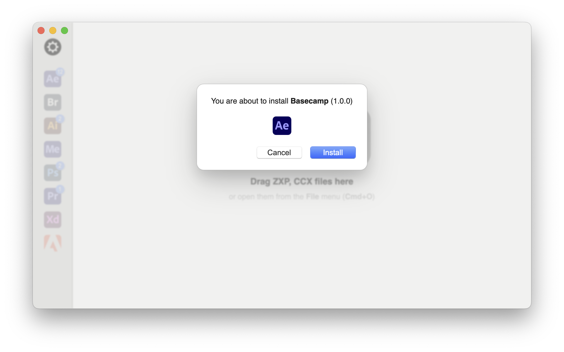 - Drag the ZXP file from your product download and drop it onto the ZXP Installer.